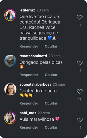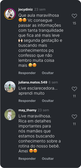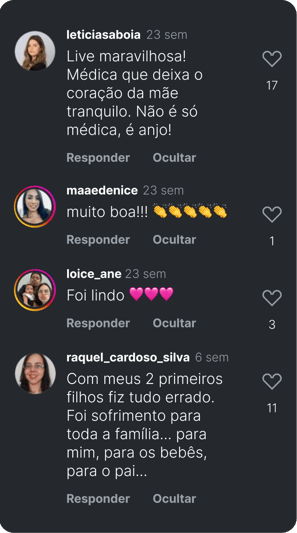 Eu sei que a sua vida com um recém-nascido é muito corrida, sem tempo para enrolação. Então eu trouxe todo o conteúdo de forma direta e prática em uma aula de 40 minutos.